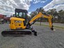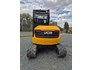 Compact excavator with Stage 3A 404D-22 diesel engine, 35.7?HP gross / 14.5?HP net, water-cooled, 105.5?lb-ft torque, 85?A alternator. Zero-tail swing design for safe operation in tight areas. Load-sensing hydraulics, excellent digging depth (~3.8?m), auxiliary hydraulics for attachments, heavy-duty undercarriage, steel panels, and spacious ergonomic cab. Easy service access with 500-hour greasing intervals. Powerful, fuel-efficient, and durable.